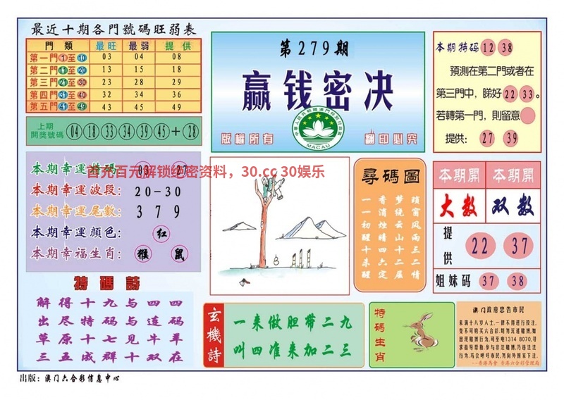 279期:不开五码【04.06.13.25.28】开:兔27中 |