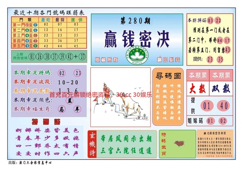 280期:🍀两国中特【魏蜀】开:鼠42中 |