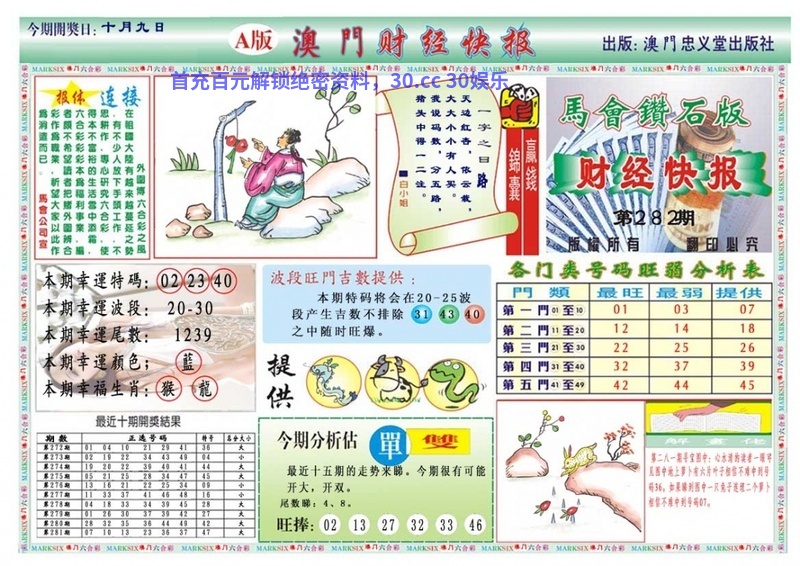 282期:单【兔羊蛇猪】双【马龙虎猴】开:牛41错 |